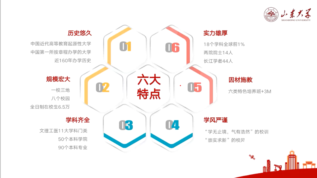 鉴于疫情防控要求,本次会议在线上举行。本次宣讲共分为两个部分,通过分别对山大概况、山大之最进行讲述,宣传了雷竞技RAYBET最新版“为天下储人才,为国家图富强”的形象。