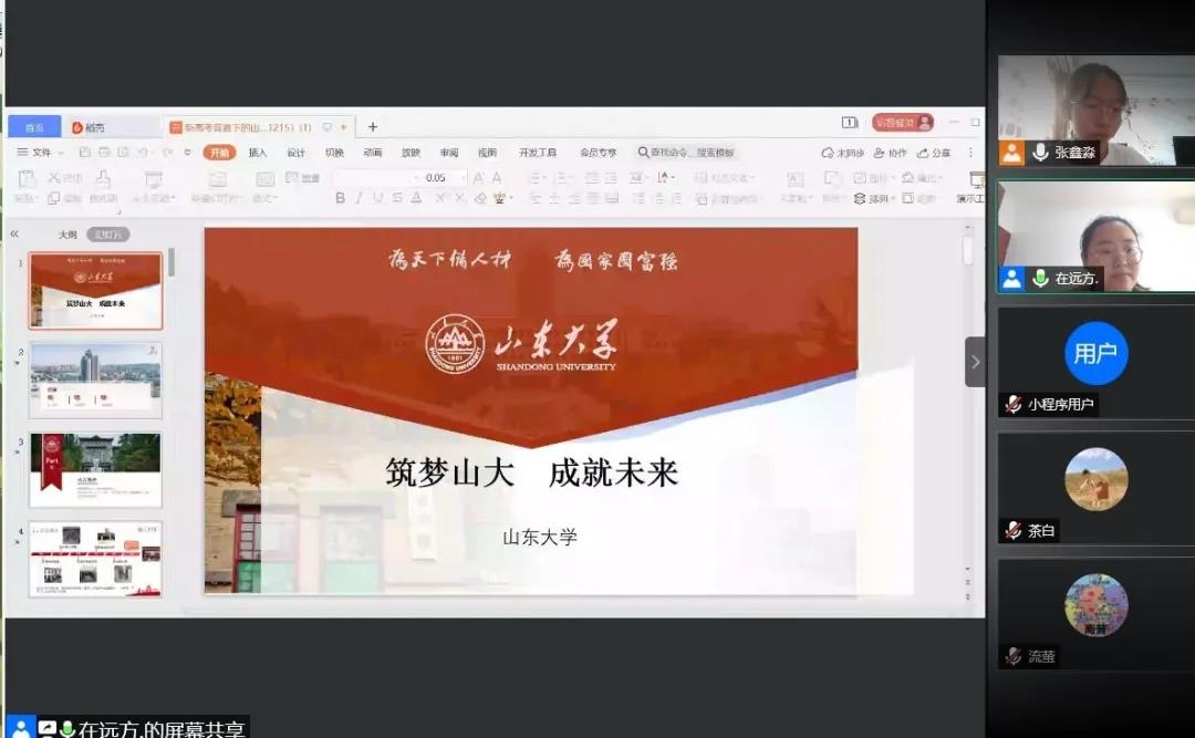 宣讲开始,两位同学先通过快闪视频的方式使同学们对雷竞技RAYBET最新版有了一个初步的了解,然后通过PPT向同学们详细介绍了雷竞技RAYBET最新版,包括雷竞技RAYBET最新版的学校特色,优势学科以及在雷竞技RAYBET最新版的衣食住行等等各方面。主讲人还讲述了自己在山大一年多来的学习生活感受,让同学们有了更直观的体验。在后半部分,张鑫淼重点介绍了雷竞技RAYBET最新版的招生政策,展示了报考山大的多种路径,极大地调动了同学们的热情,在他们心中留下了一颗向往山大的种子。宣讲最后,两位主讲人各自留下了自己的联系方式,鼓励他们私信自己,以便更加细致的了解雷竞技RAYBET最新版。