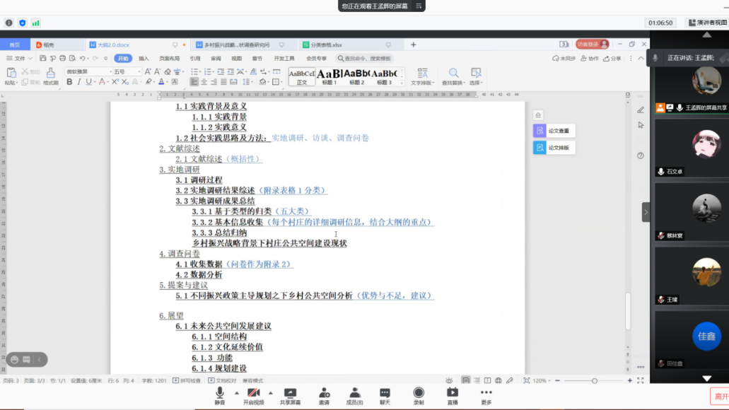 随后,小组成员对照结题报告中的部分内容如调查问卷、实地调研、提案与建议等进行了讨论,并进行了分工,完成了报告中的部分内容。