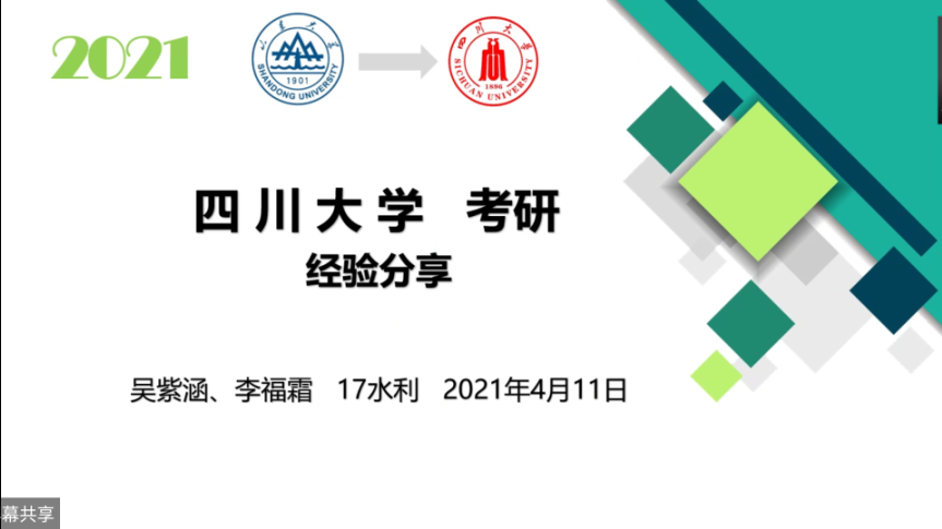 4月11日晚, 雷竞技RAYBET最新版水利系举办了线上考研分享交流会。本次交流会邀请了2017级水利水电班曲勇晓、费琦翔、吴紫涵、李福霜担任分享嘉宾。