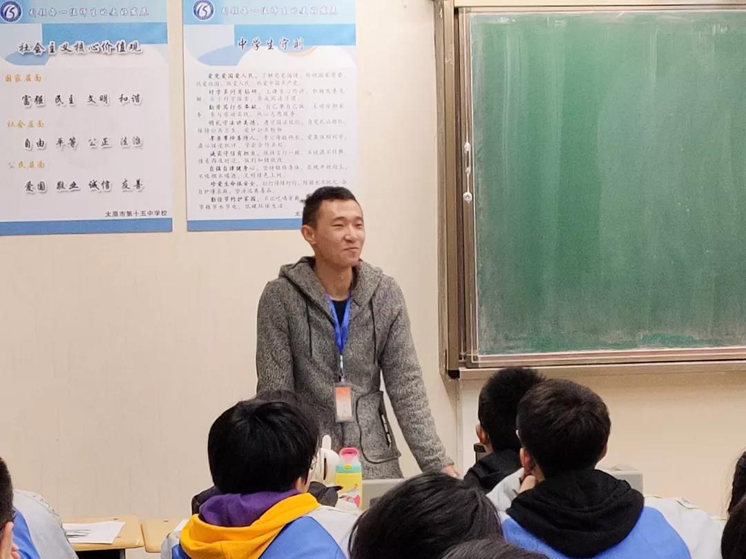 1月17日,山西省79队队长与一名队员赴太原十五中进行宣讲活动。当天下午,刘松源与马宇鑫提前数小时到达十五中,为宣讲做最后的准备工作:整理小礼品、与学校沟通填表事项等。待高一1907班上完下午最后一节课后,在班主任安排下进入班级进行宣讲。