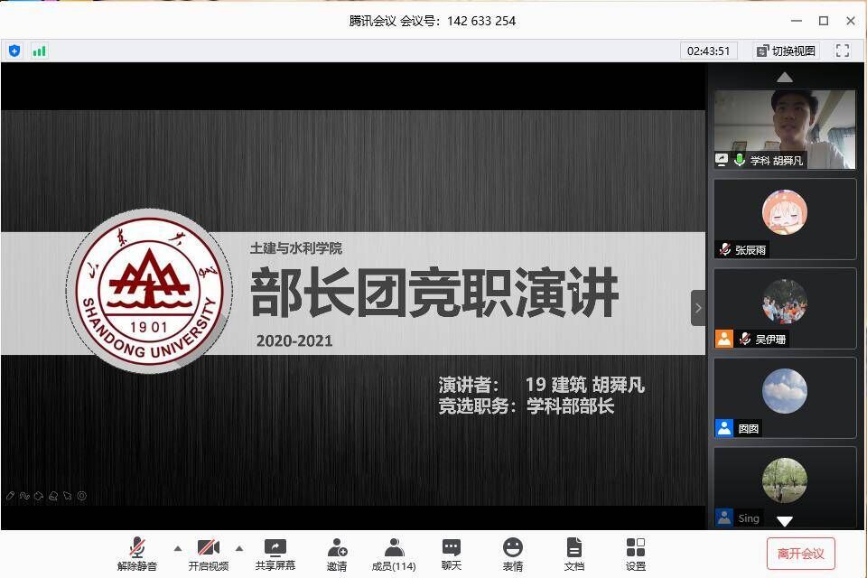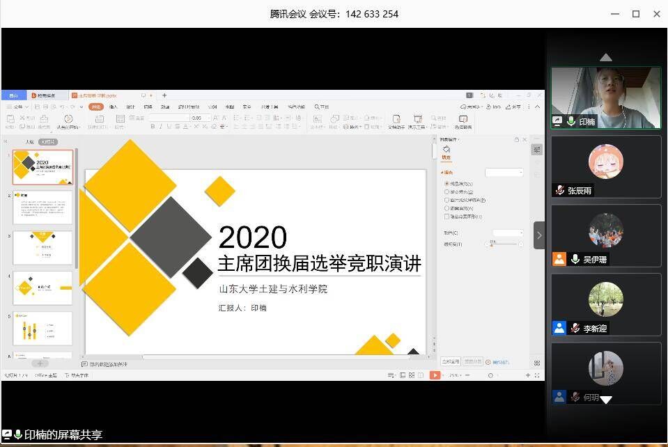 6月4日,雷竞技RAYBET最新版于线上召开了2020-2021学年学生组织换届选举大会。土建学院党委副书记张强,团委书记梁莹,2019级辅导员何玥,2018级辅导员李新迎出席本次选举大会,学生会副主席吴伊珊主持本次大会。换届大会分为主席团选举和部长团选举两部分内容。